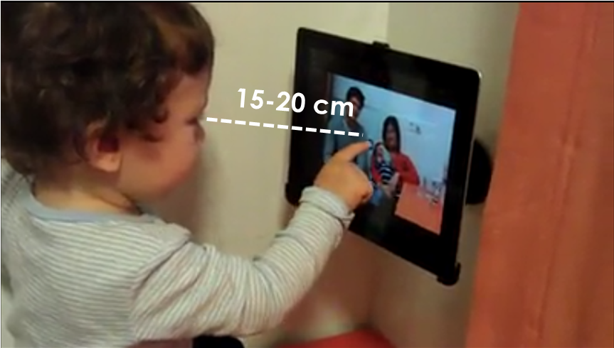 Figure 1: Viewing distance of an 18-month-old child. The touch screen forces the child to reduce the viewing distance.