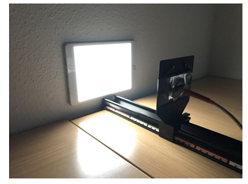 Figure 3: Spectrophotometer Ocean Optics USB 2000 installed on the optical bench was used to measure the screen’s light emission.