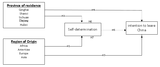 Hypothesis 6: The level of a foreigner’s self-determination positively mediates the relationship between the region of origin and the desire to leave China.